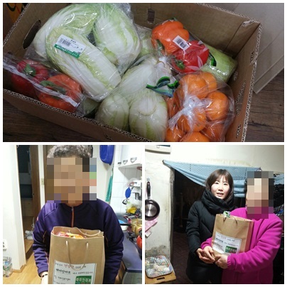 '쌈배추, 무, 파프리카, 귤'을 나눠 '나눔 바구니'를 만들어 공덕동에 거주하는 2가정에 지원해드렸습니다.