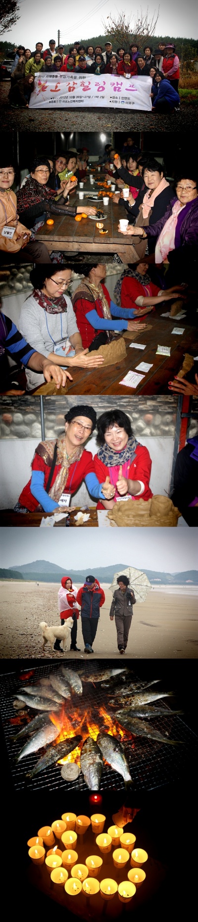 지난 10월 26일~27일 마포구 치매·중풍노인 부양가족을 위한 “오감힐링캠프”가 진행되었습니다. 낭만적이고 이국적인 풍경을 물~씬 느낄 수 있었던 삼봉해수욕장의 백사장도 걸어보고, 점토 조형도 만들어보고~ 촛불과 함께 마음나누기까지..