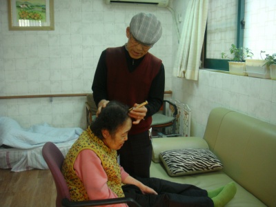 매일 어르신들에게 마사지해주시고 머리와 뭉친어깨를 풀어주시는 최규섭 봉사자님
