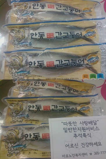 안동 간고등어 2마리씩 전달해드렸습니다.