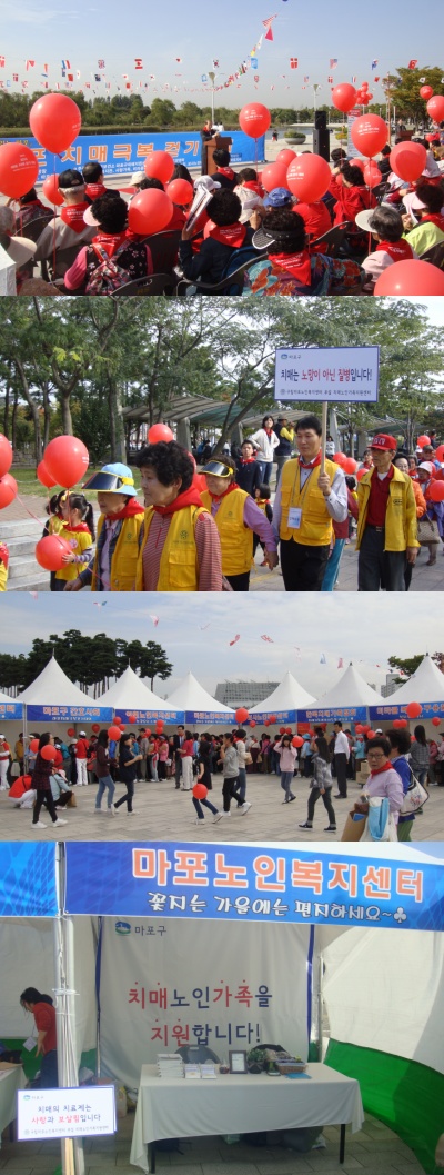치매극복의 날(9월21일) 을 맞아 마포구치매지원센터에서 주관하는 '마포치매걷기대회' 행사에 참가하였습니다. 월드컵공원 평화의 광장에서 진행되었고 치매에 대한 이해와 사회적 인식을 높이는 계몽활동을 통해 사랑과 관심이 치매를 극복할 수 있음을 공감합니다.