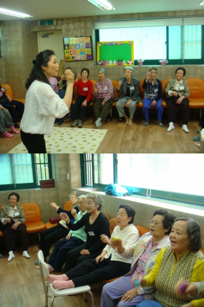 우리 어르신들이 좋아하시고 기다리는 음악치료 프로그램! 모두 열심히 집중하는 모습 보기 좋지요? 음악치료사 김경희 선생님이 아주 열정적으로 어르신들과 함께 하신답니다.