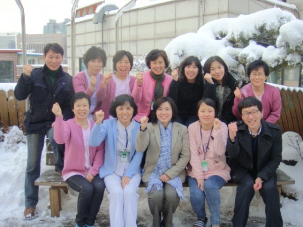 서설이 하얗게 내린 가운데 우리마포재가노인복지센터 직원들이 새로운 마음으로 "서로가 행복한 감동서비스" 를 향하여 "화이팅!" 힘찬 출발을 다짐했습니다.