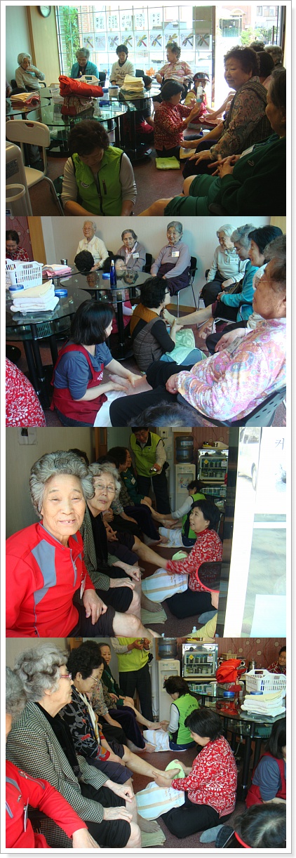 주야간 보호어르신 발사랑 발마사지프로그램 페이지 정보 작성자 마포재가노인복지센터 작성일10-05-12 12:03 조회6,028회 댓글0건 관련링크 이전글 다음글 목록 본문 발사랑에서 오셔서 어르신들께 아로마발마사지를 해주셨습니다. 댓글목록 등록된 댓글이 없습니다. 이전글 다음글 목록