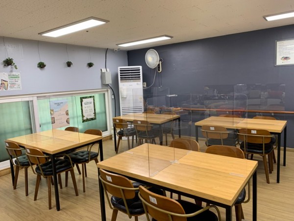 프로그램실과 식당에 투명 가림막을 설치했습니다.