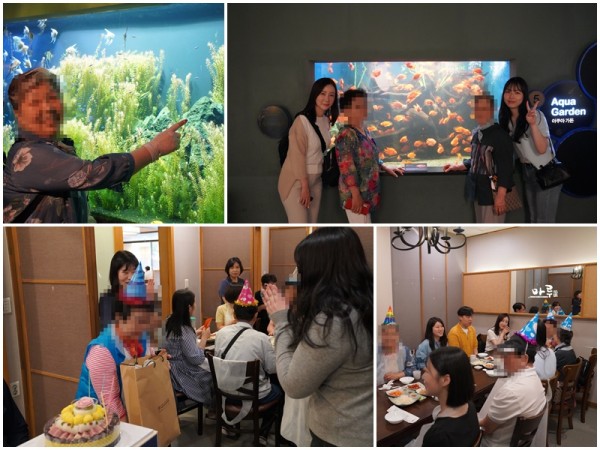 식사 장소로 이동해 함께 떡케이크에 촛불을 켜고 생신 축하 노래를 불러드렸습니다.