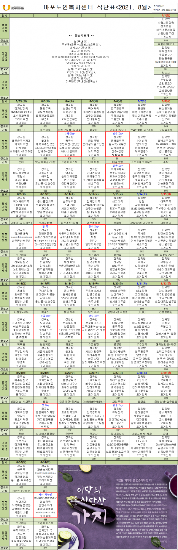 2021년 8월 식단표 안내 페이지 정보 작성자 마포노인 작성일21-07-28 15:29 조회1,051회 댓글0건 관련링크 이전글 다음글 목록 본문 2021년 8월 식단표 안내 댓글목록 등록된 댓글이 없습니다. 이전글 다음글 목록