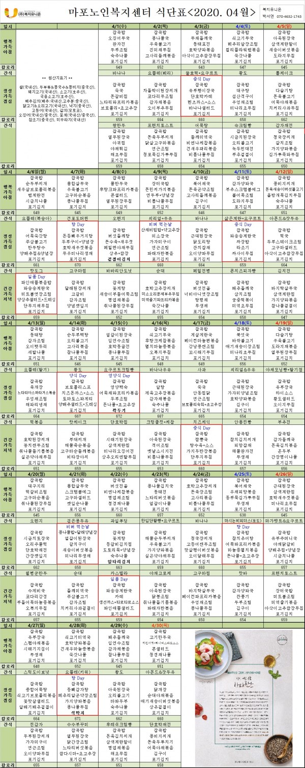 2020년4월 식단표 안내 페이지 정보 작성자 마포복지 작성일20-04-01 10:29 조회1,425회 댓글0건 관련링크 이전글 다음글 목록 본문 마포노인복지센터 2020년 4월 식단표 안내 댓글목록 등록된 댓글이 없습니다. 이전글 다음글 목록