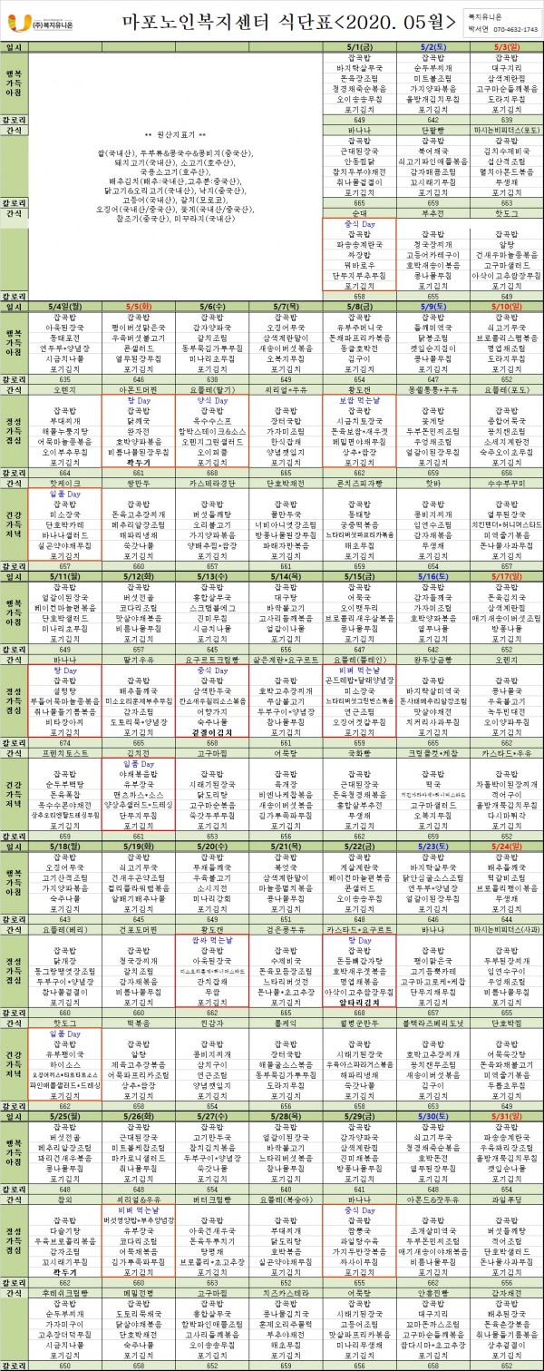 2020년5월 식단표 안내 페이지 정보 작성자 마포복지 작성일20-04-28 16:07 조회1,354회 댓글0건 관련링크 이전글 다음글 목록 본문 마포노인복지센터 2020년5월 식단표 안내 댓글목록 등록된 댓글이 없습니다. 이전글 다음글 목록