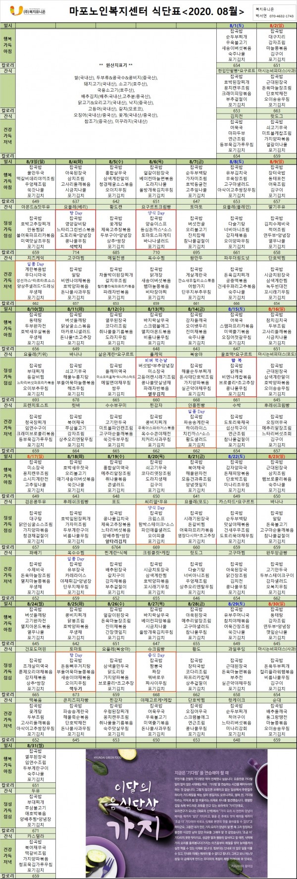 2020년8월 식단표 안내 페이지 정보 작성자 마포노인 작성일20-08-03 10:38 조회1,376회 댓글0건 관련링크 이전글 다음글 목록 본문 2020년 8월 식단표 안내 댓글목록 등록된 댓글이 없습니다. 이전글 다음글 목록