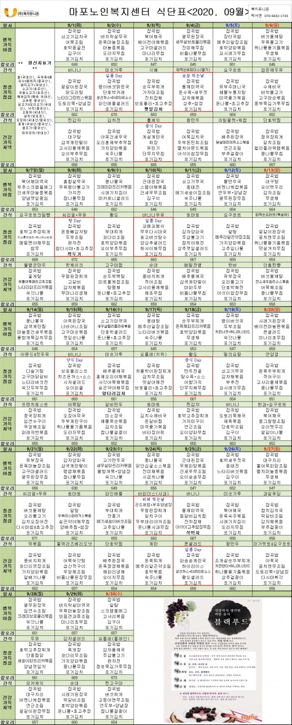 2020년 9월 식단표 안내 페이지 정보 작성자 마포노인 작성일20-09-07 10:43 조회1,341회 댓글0건 관련링크 이전글 다음글 목록 본문 2020년 9월 식단표 안내 댓글목록 등록된 댓글이 없습니다. 이전글 다음글 목록