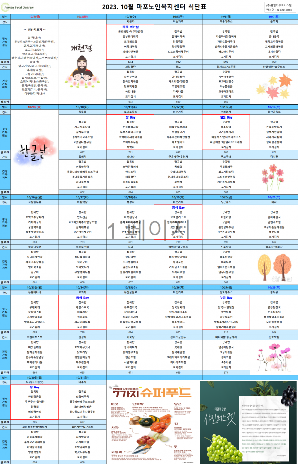 2023년 10월 식단표 페이지 정보 작성자 마포노인 작성일23-09-26 15:53 조회863회 댓글0건 관련링크 이전글 다음글 목록 본문 2023년 10월 식단표 안내드립니다. ^_^ 댓글목록 등록된 댓글이 없습니다. 이전글 다음글 목록