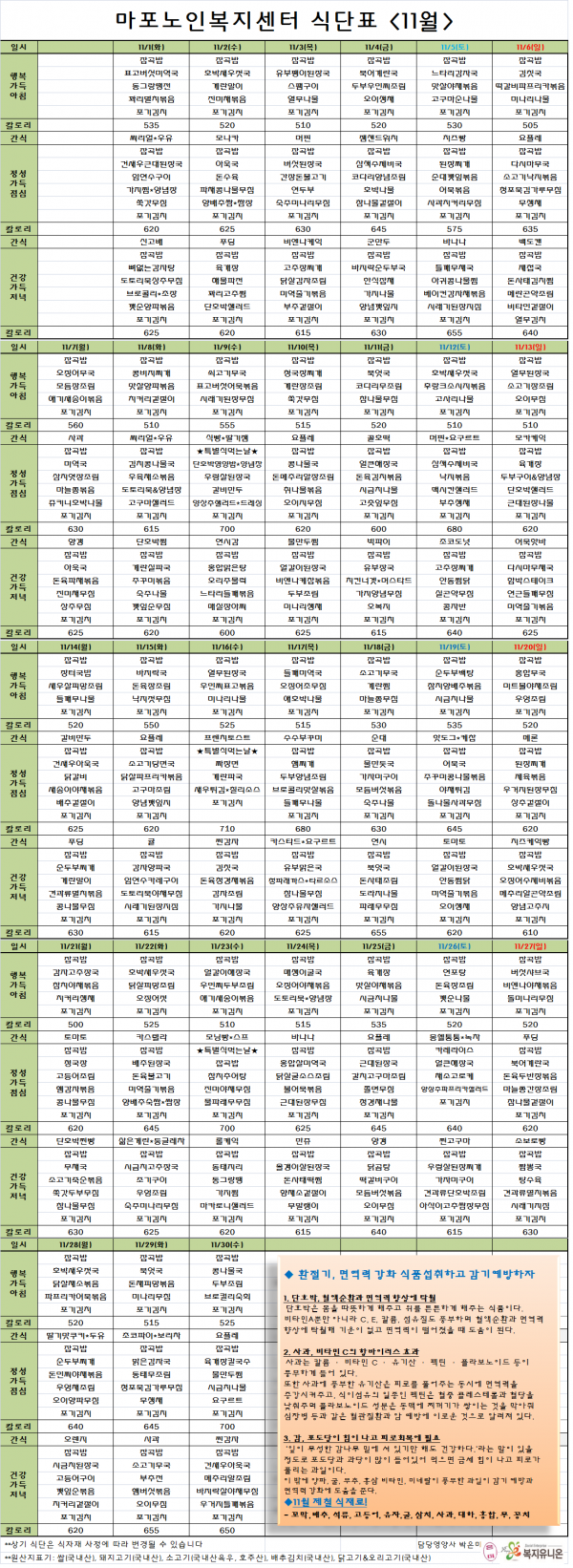 2016년 11월 식단표입니다. 페이지 정보 작성자 마포복지 작성일16-11-01 14:42 조회1,592회 댓글0건 관련링크 이전글 다음글 목록 본문 마포노인복지센터 11월 식단표 입니다. 댓글목록 등록된 댓글이 없습니다. 이전글 다음글 목록
