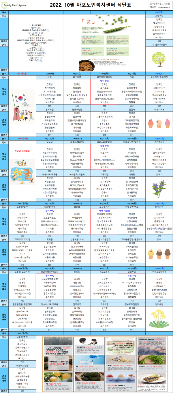 2022년 10월 식단표 페이지 정보 작성자 마포노인 작성일22-09-29 16:01 조회1,003회 댓글0건 관련링크 이전글 다음글 목록 본문 2022년 10월 식단표 안내 드립니다. 댓글목록 등록된 댓글이 없습니다. 이전글 다음글 목록