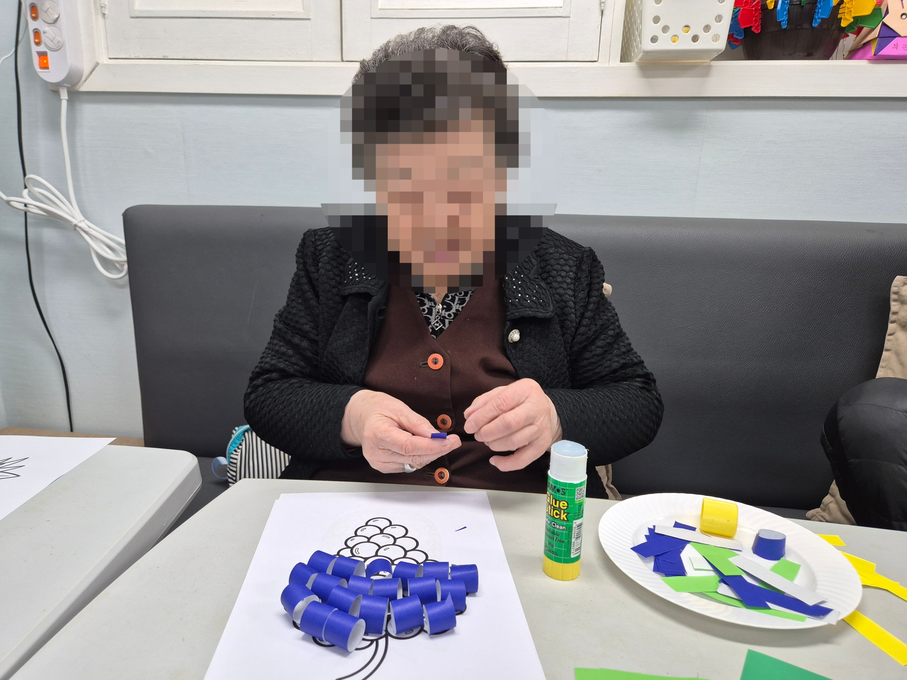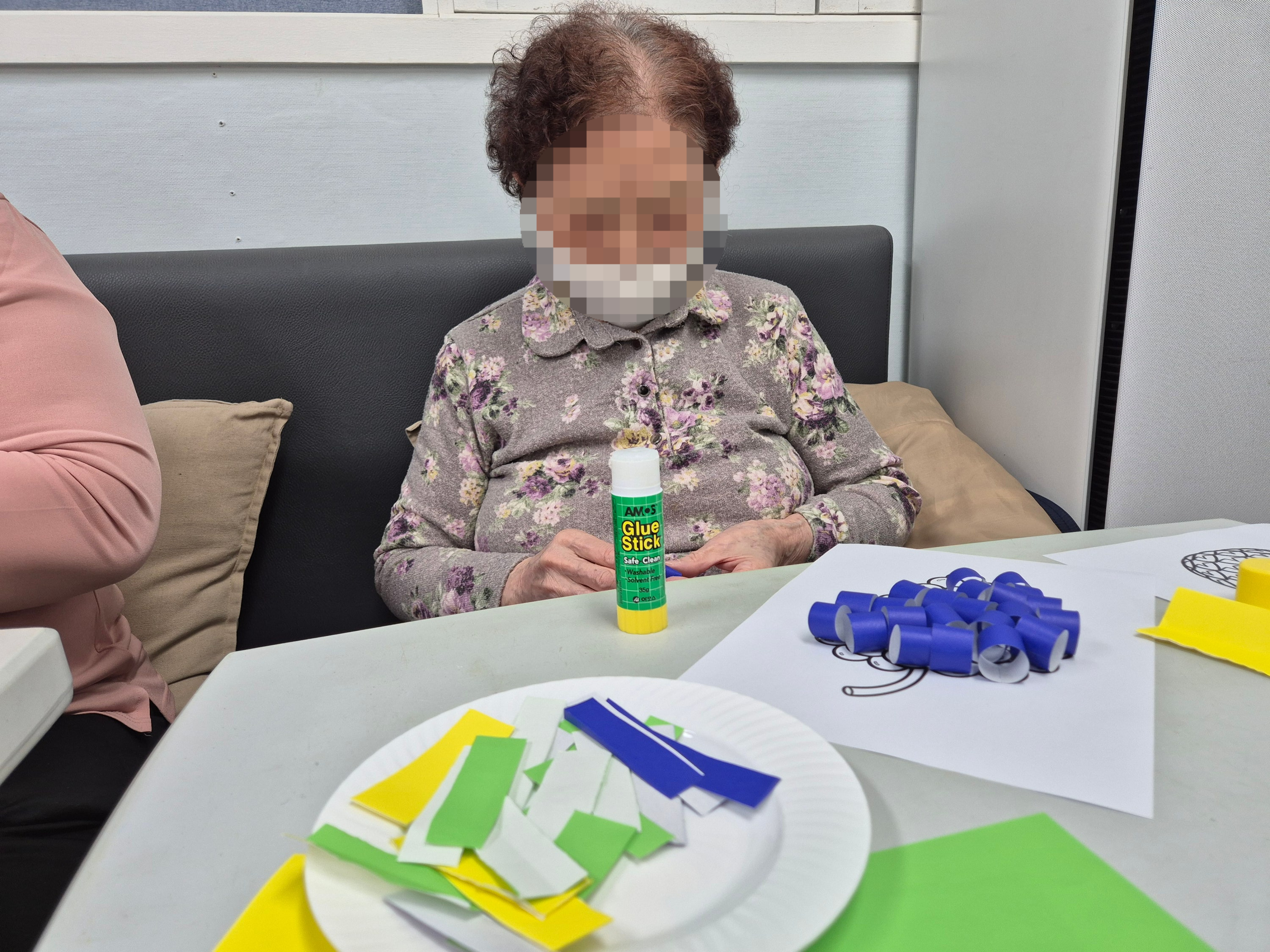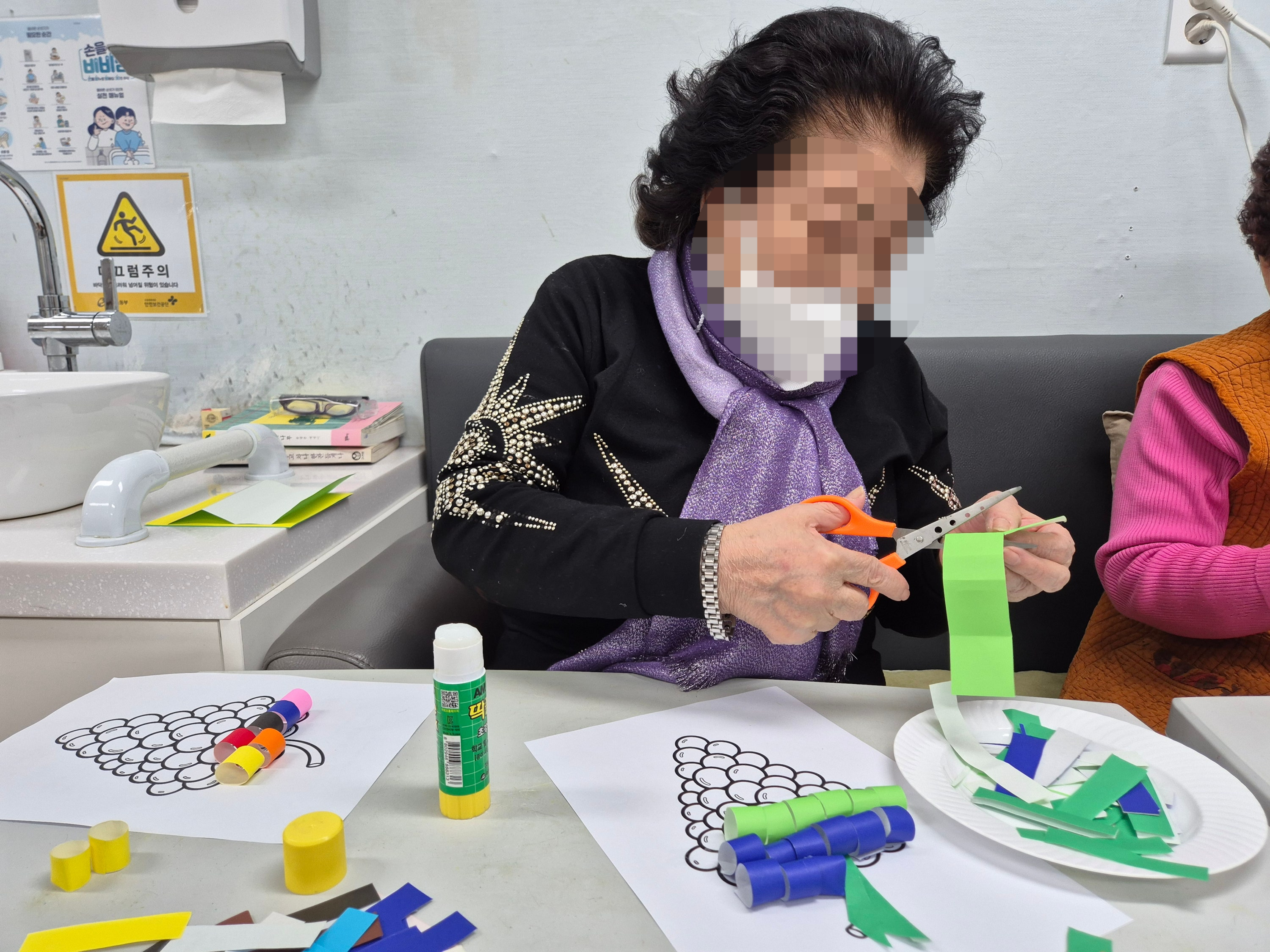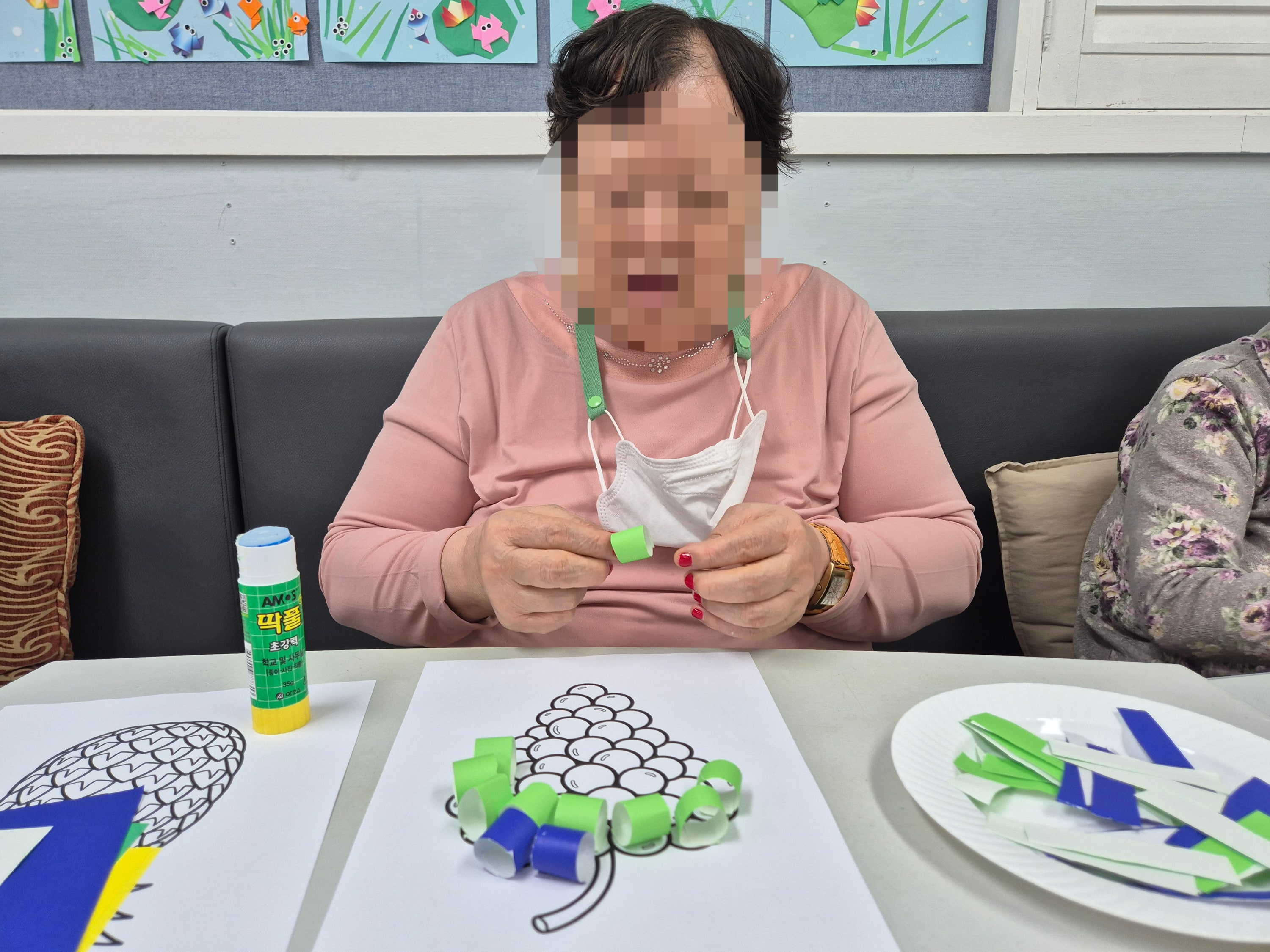 내용: 과일 도안에 색종이를 동그랗게 말아 붙이는 수공예 활동을 진행했습니다.