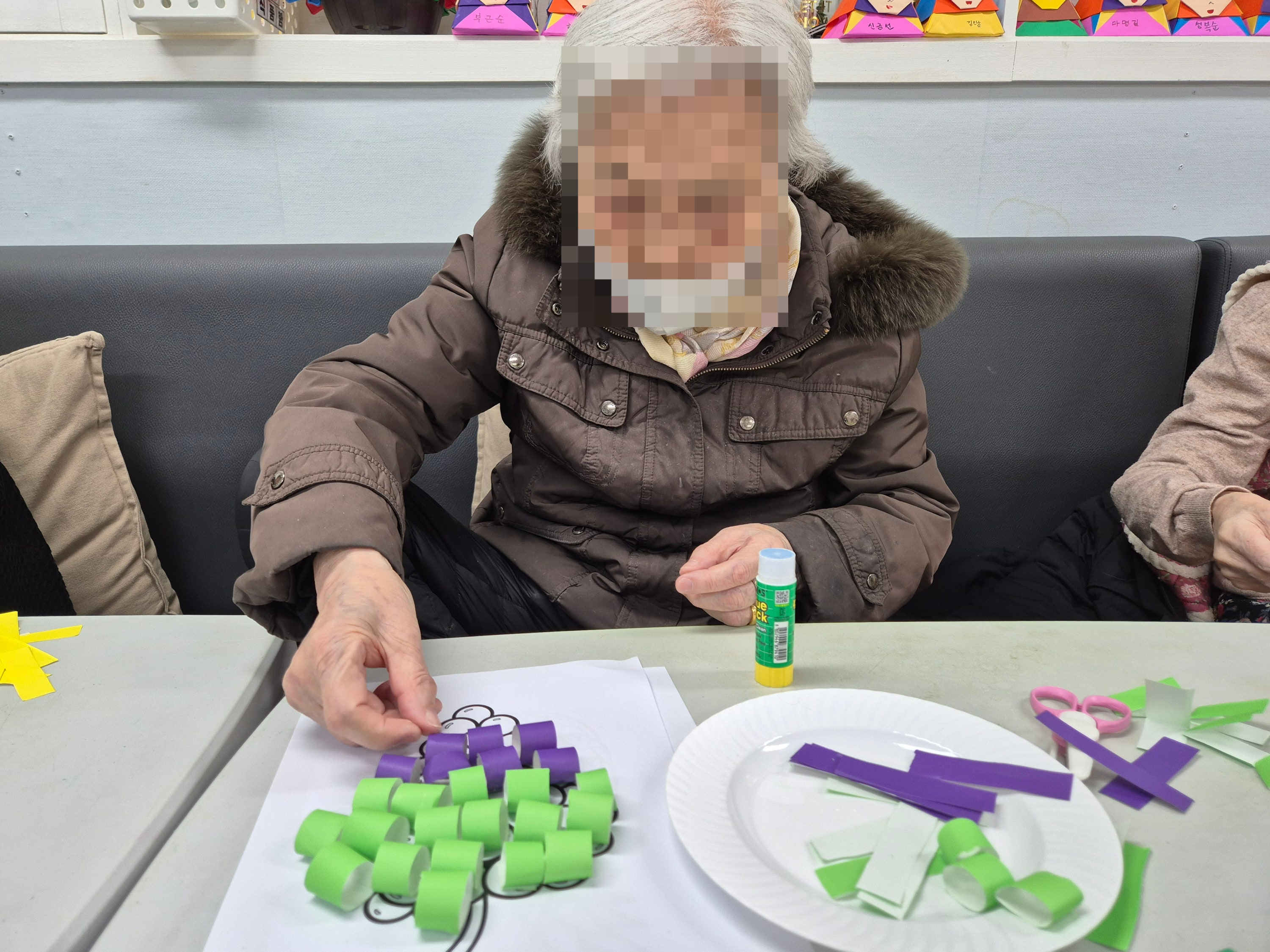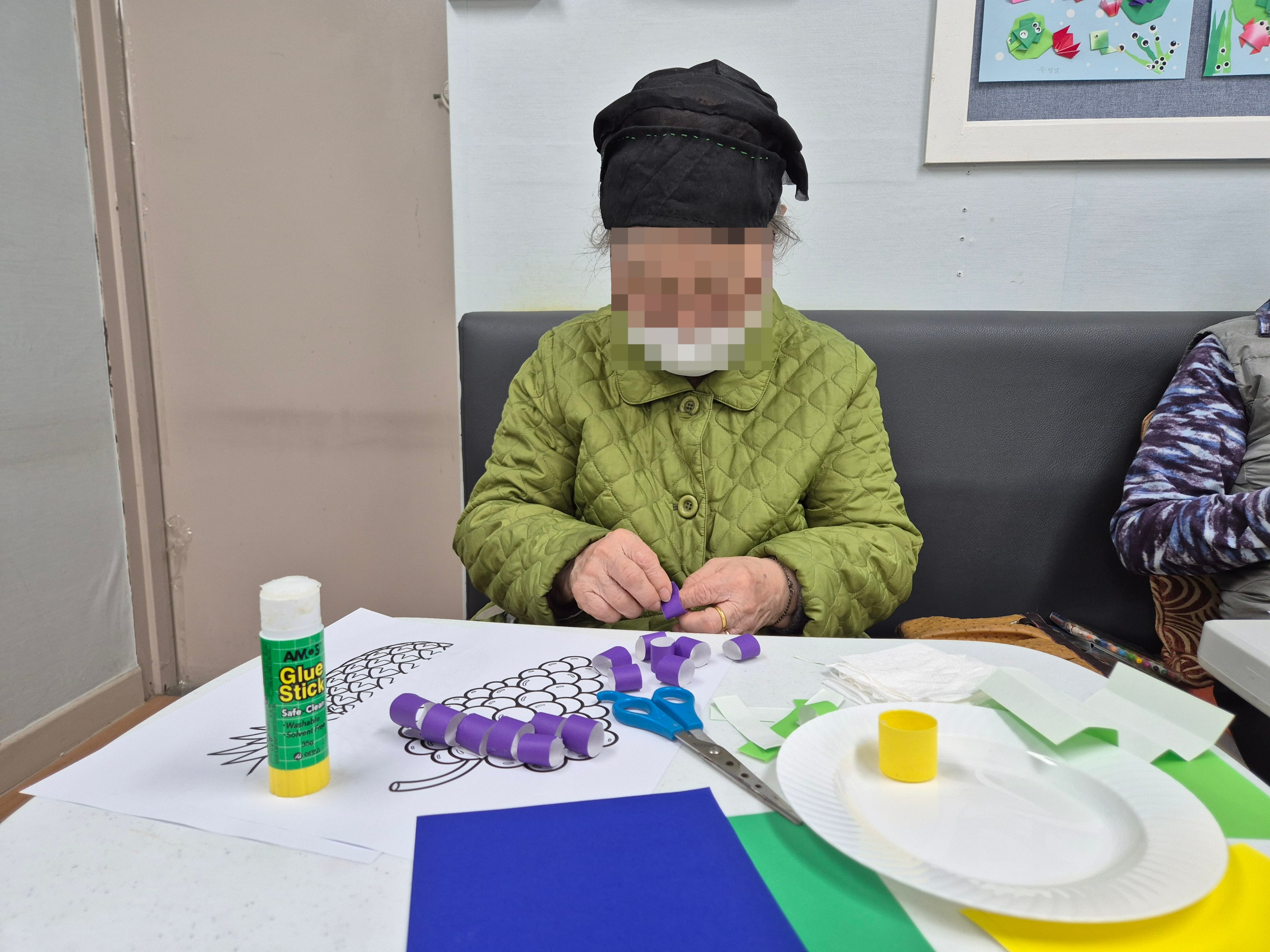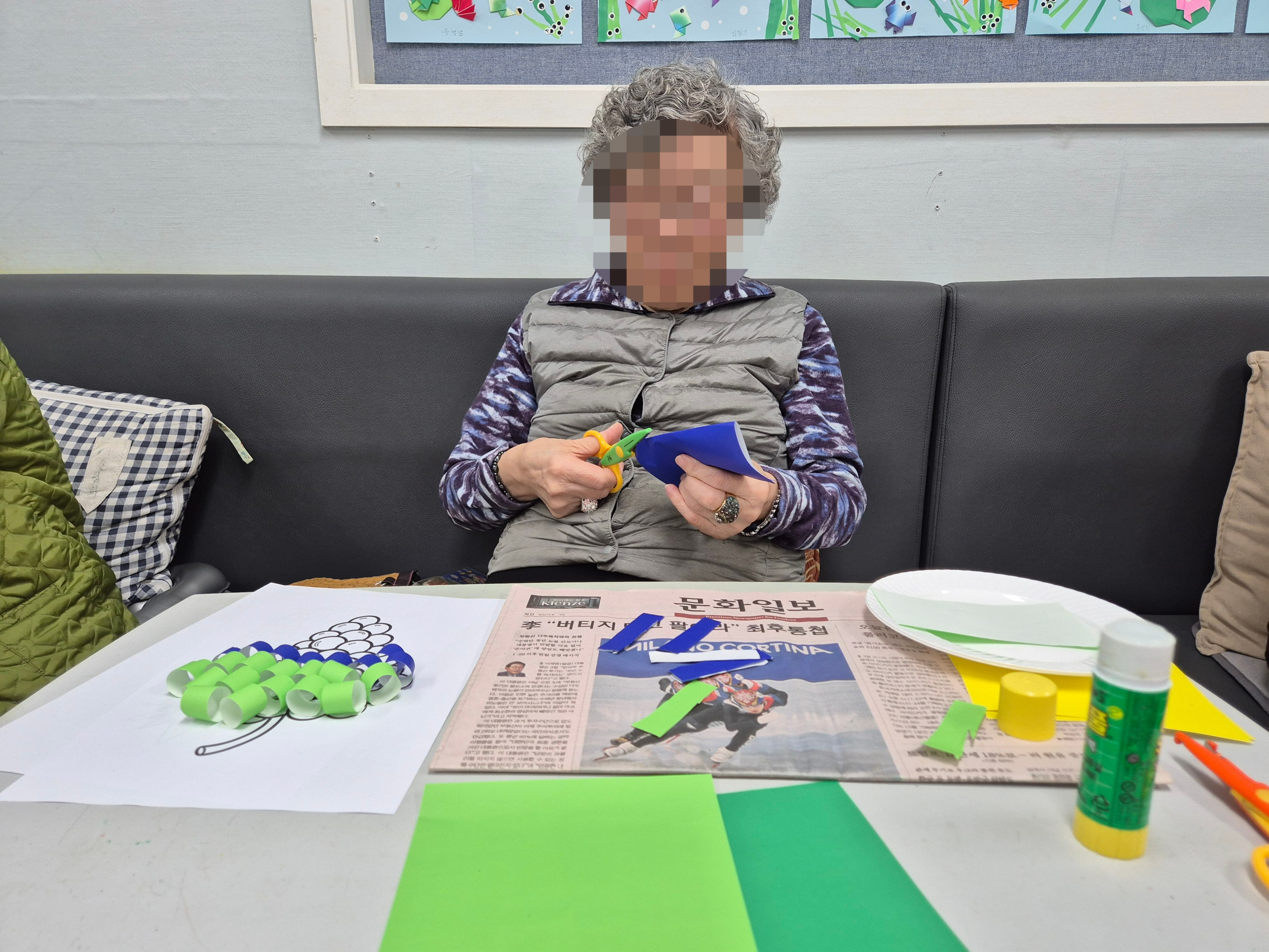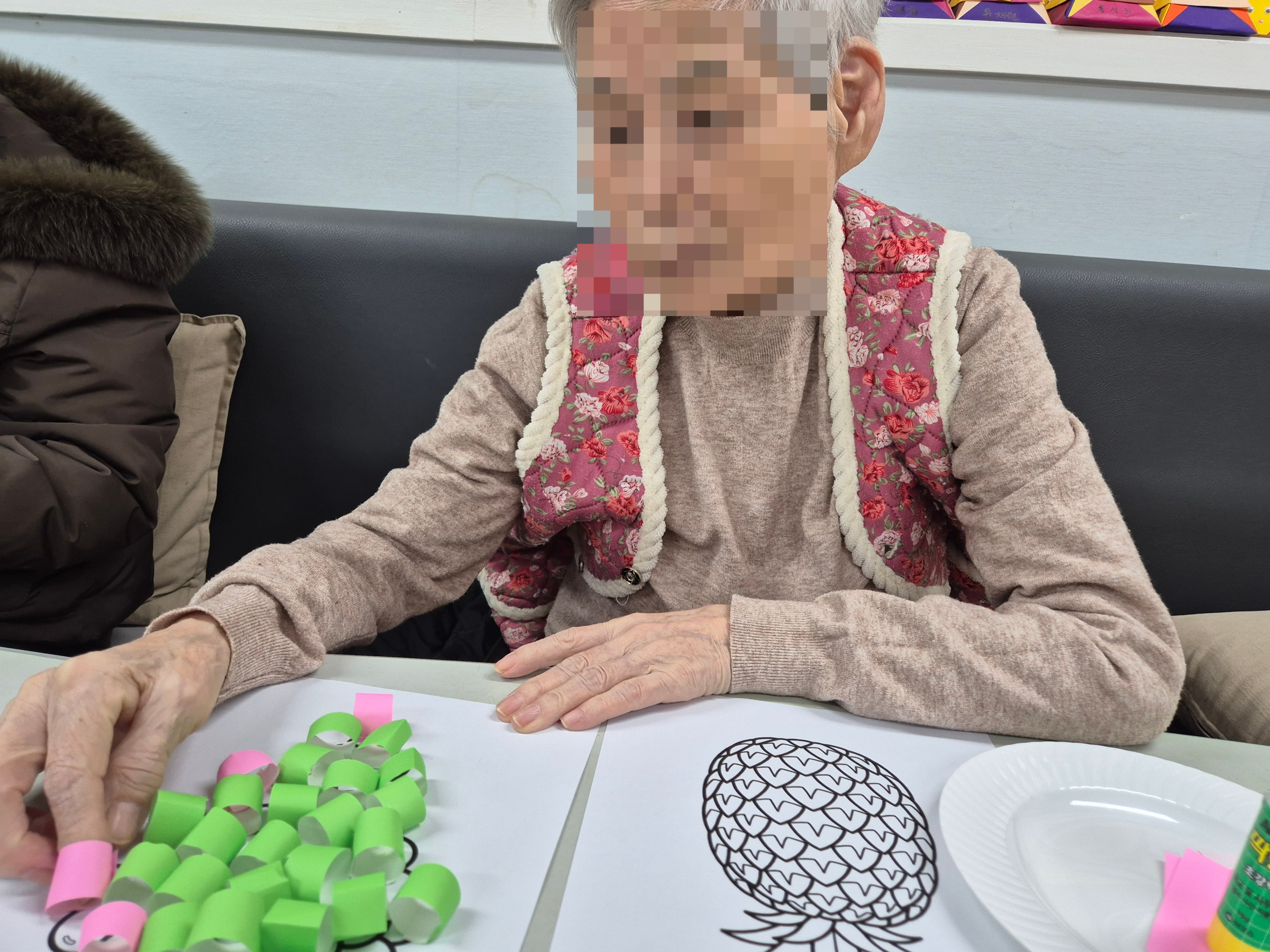 내용: 과일 도안에 색종이를 동그랗게 말아 붙이는 수공예 활동을 진행했습니다.